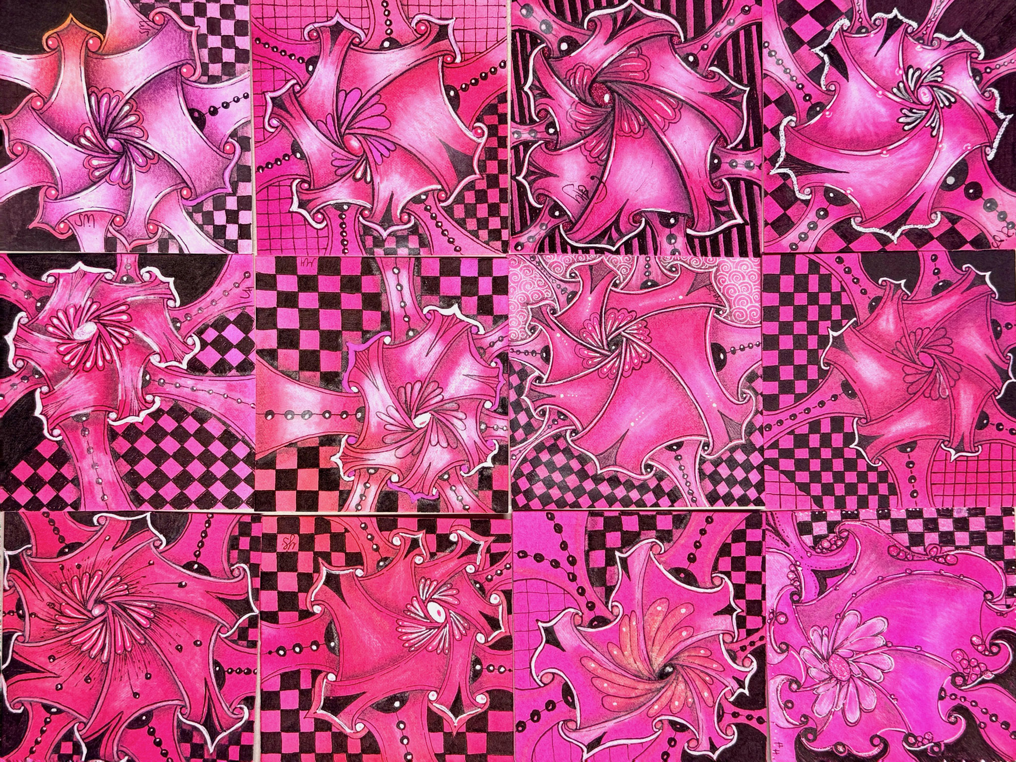 Zum ersten Mal habe ich an einem Wochenende einen Kurs zweimal gegeben- Am Samstag in Präsenz in Dresden und am Sonntag online. So konnten auch Zentanglebegeisterte teilnehmen, die nicht in Dresden zu Hause sind.